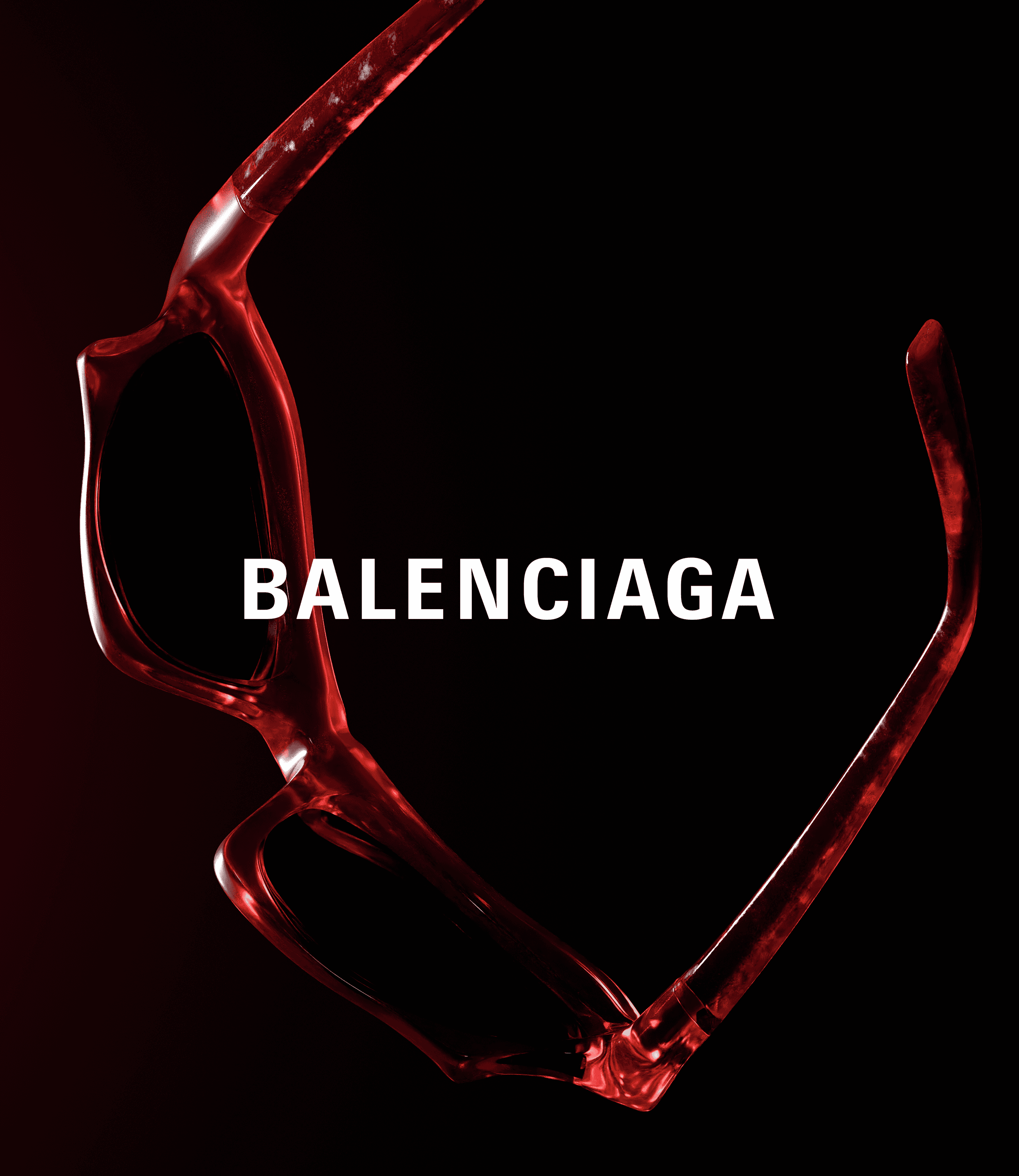 A 3D Visualization showcasing a custom Balenciaga sunglasses with red glass.